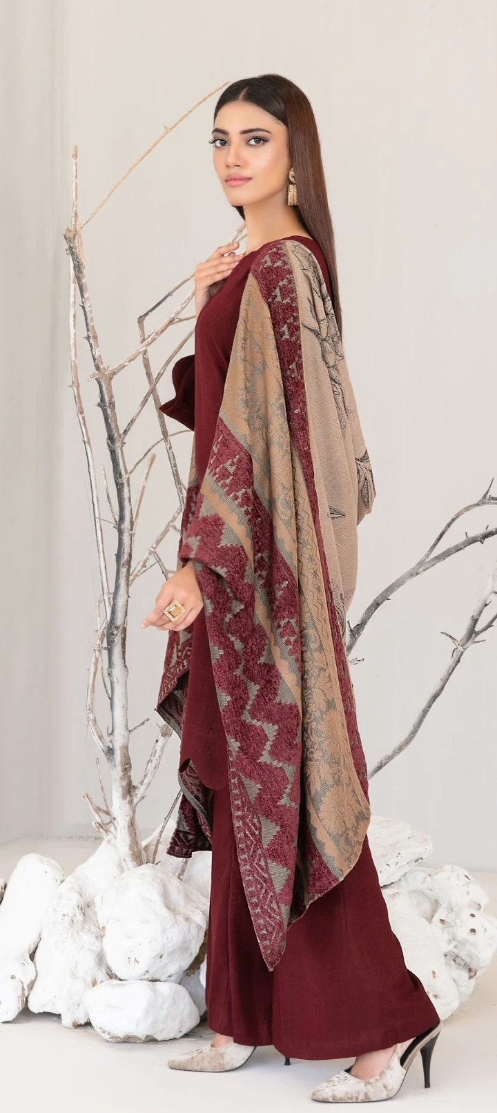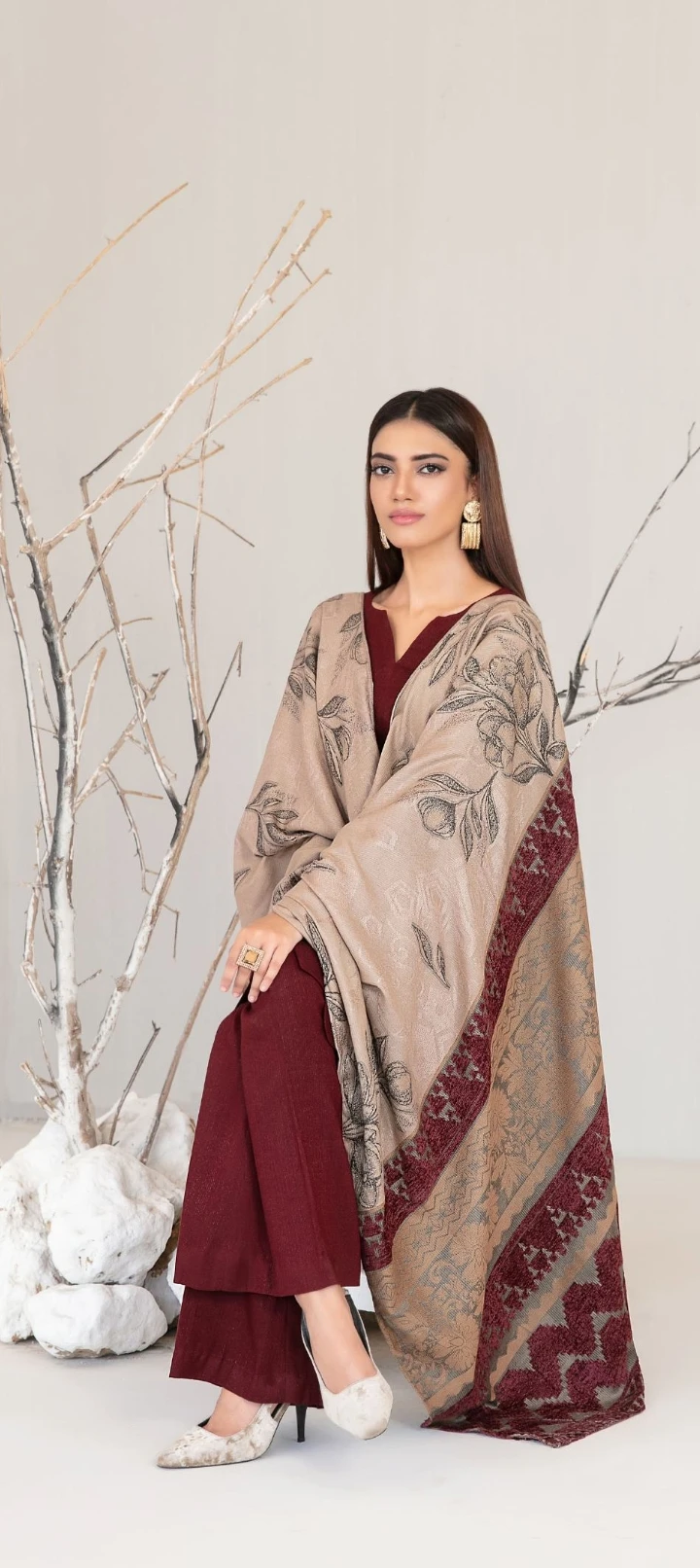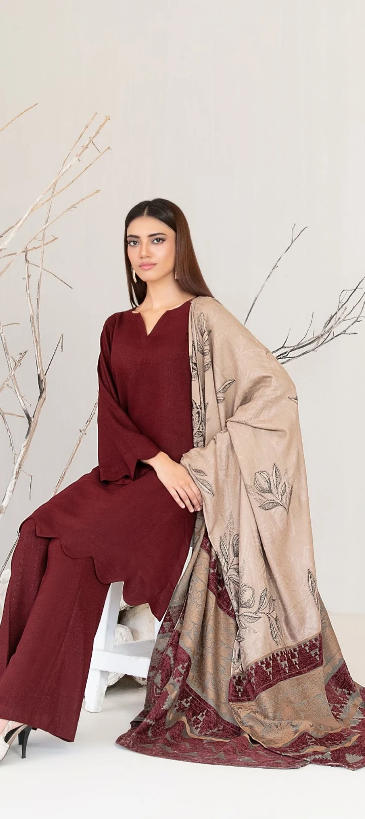 Exclusive Fancy Shawl Dupatta & Un-Stitched Plain Leather Shalwar Fabric