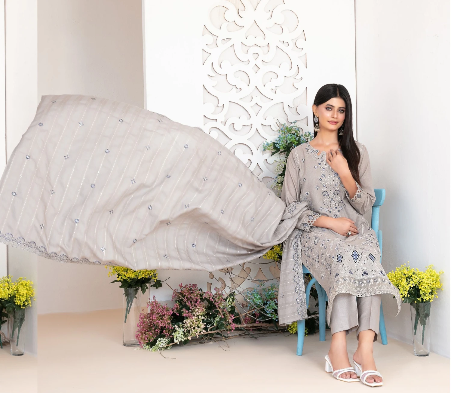 Step into elegance with the Joom unstitched 3-piece Suit. Featuring exquisite embroidery on premium fabrics, this Pakistani women’s collection includes a beautifully designed shalwar, shirt, and dupatta. Perfect for creating a sophisticated and personalized look.